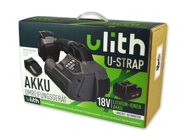 Das Ulith U-Strap Akku-Umreifungsgerät kombiniert Leistung, Flexibilität und Ergonomie in einem kompakten und leichten Gerät. Es spannt und fixiert Kunststoff-Umreifungsbänder zuverlässig und eignet sich für den mobilen Einsatz in Produktion, Lager, Versand und Logistik. Durch das leichte Gewicht (4,2kg) und die handlichen Maße können Umreifungen auch einhändig durchgeführt werden – schnell, effizient und flexibel für verschiedenste Verpackungen.